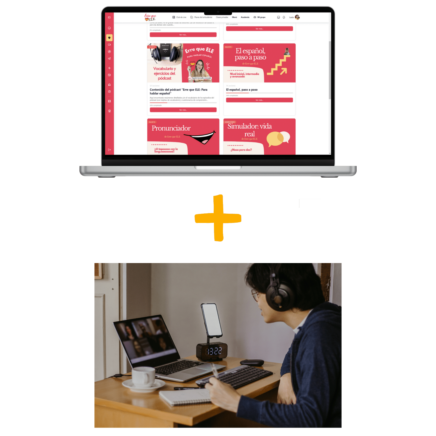 Incluye TODO el Nivel Plata + un curso completo en vivo de B1, B2 o C1: una clase de 90 minutos cada semana con tu grupo (máx. 5 estudiantes) para trabajar todas las destrezas del español y con corrección de textos y tareas. Solo se abre 3 veces al año. ¡Apúntate a la lista de espera!